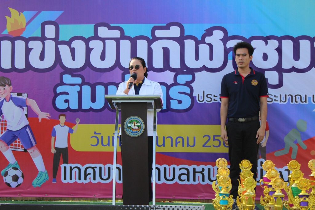 วันพุธที่ 11 มีนาคม 2569 เทศบาลตำบลหนองม่วง นำโดยนายกิติศักดิ์ วัฒนสิงห์ดำรงค์ นายกเทศมนตรีตำบลหนองม่วง พร้อมคณะผู้บริหาร สมาชิกสภาฯ ร่วมกับคณะกรรมการชุมชน และกลุ่มชมรมต่างๆ ของเทศบาลฯ ร่วมแข่งขันกีฬาสากลและพื้นบ้าน ตามโครงการแข่งขันกีฬาชุมชนสัมพันธ์ ประจำปี 2569 โดยเน้นสร้างความสนุกสนานและสามัคคีของผู้ร่วมกิจกรรม โดยมีว่าที่ร้อยตรีหญิง สรวีย์ เหมือนเพ็ชร์ นายอำเภอหนองม่วง เป็นประธานในพิธี ณ เทศบาลตำบลหนองม่วง
